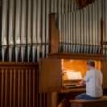 Kyrkoherde Torvild Evensson aus Frankfurt leitete den Gottesdienst und Kantor Stefan Ljungberg begleitete ihn musikalich am Orgel.